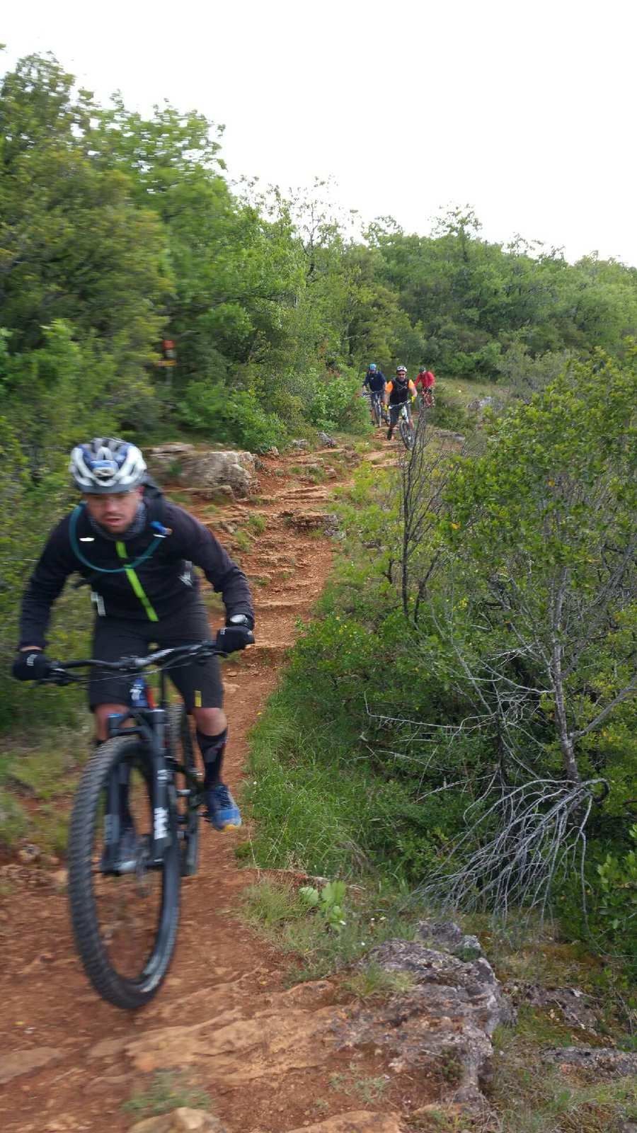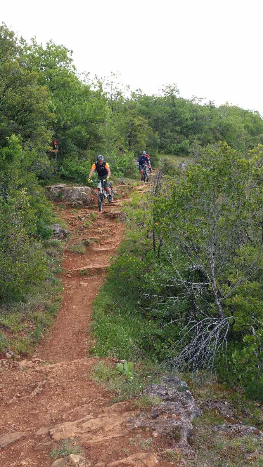 Départ 9H30 direct sur la noire et là, que du bonheur, du single, de la corniche, des vues à couper le souffle, des descentes et des montées techniques, du ruisseau asséché. Honnêtement heureusement que le terrain était sec. Ce doit être rock & roll sur un terrain même à peine humide.
